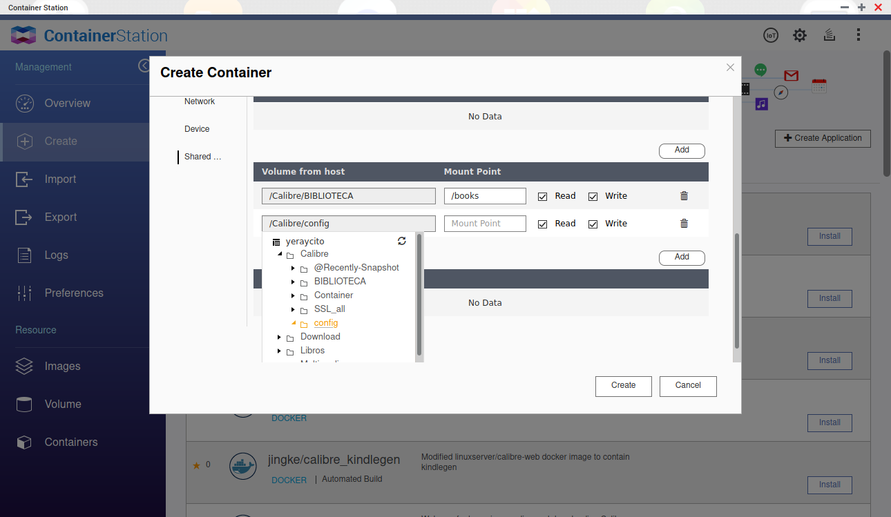 Como verás en las imágenes que he puesto la diferencia entre tu instalación y la mia es la siguiente. Tu error que comentas es que el programa no te reconoce la ubicación de tu carpeta biblioteca cuando pones /books en la configuración del programa. En mi caso y siguiendo el tutorial mi carpeta biblioteca es una subcarpeta ( osea, una carpeta dentro de otra carpeta ) metida en una carpeta principal llamada Calibre ubicada en el directorio principal del nas. Teniendola así yo no he tenido ningún problema. Sin embargo, tu lo has hecho así y a ti no te funciona. Explicación: lo desconozco. A mi si me funciona. Por cierto, pusiste una captura de pantalla en la que se veia el directorio /share/ y al no especificar que era una captura de la configuración del contenedor despues de instalarlo me pensaba que era del paso 5 del tutorial y por eso te dije que no utilizaras esa ruta. Como a ti no te ha funcionado lo has resuelto NO poniendo tu carpeta biblioteca dentro de ninguna otra carpeta y dejándola diréctamente en el directorio principal del nas. Por tanto, bien también si a ti te ha funcionado. Resumiendo, todo el tutorial está bien. Hasta la fecha, y el post lleva ya bastante tiempo, nadie había comentado ningún error como el que tu comentas. Como acabas de ver en mi nas funciona igual de bien que siempre. De todas maneras si a ti te ha funcionado de otra manera me alegro.