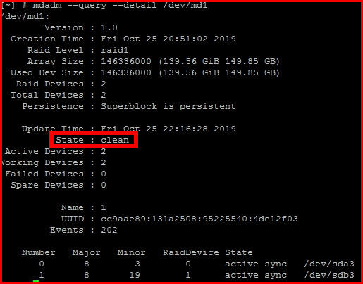 Quote:mdadm --query --detail /dev/md1veremos que ahora el disco es /dev/sda