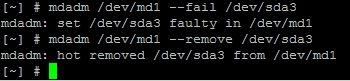 Quote:mdadm /dev/md1 --fail /dev/sda3