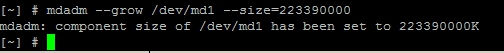 Quote:mdadm --grow /dev/md1 --size=223390000