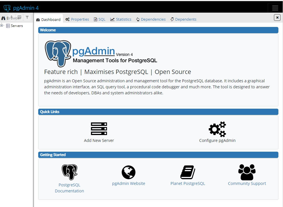 docker run -d -p ip_local_de_la_nas:55050:5050 --name="pgadmin" --network=miscontenedores thajeztah/pgadmin4En este caso no tienen mucho sentido hacer los datos persistentes, ya que como tal vamos a hacer una gestión web de bases de datos (que si son las que tienen los datos)