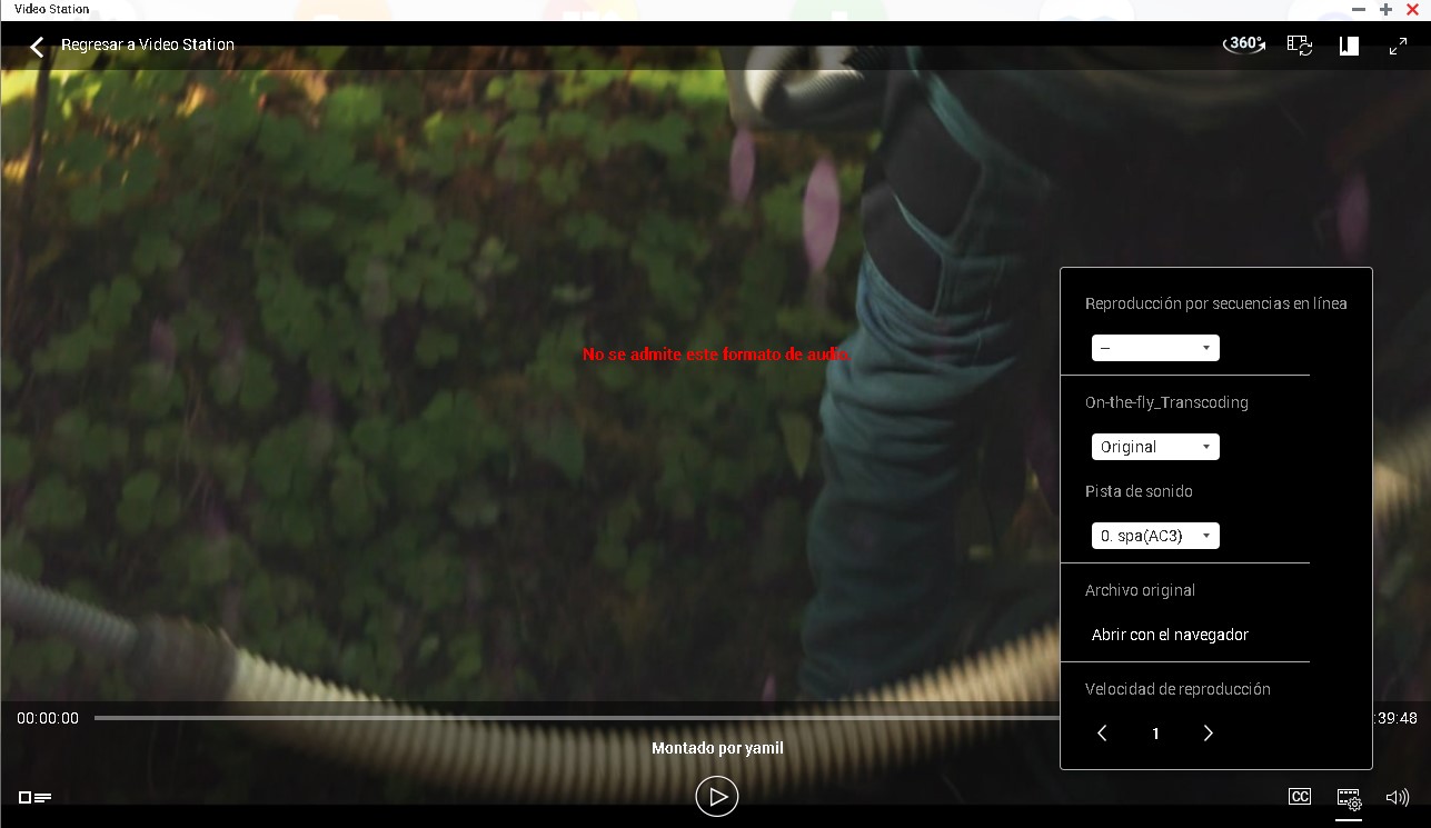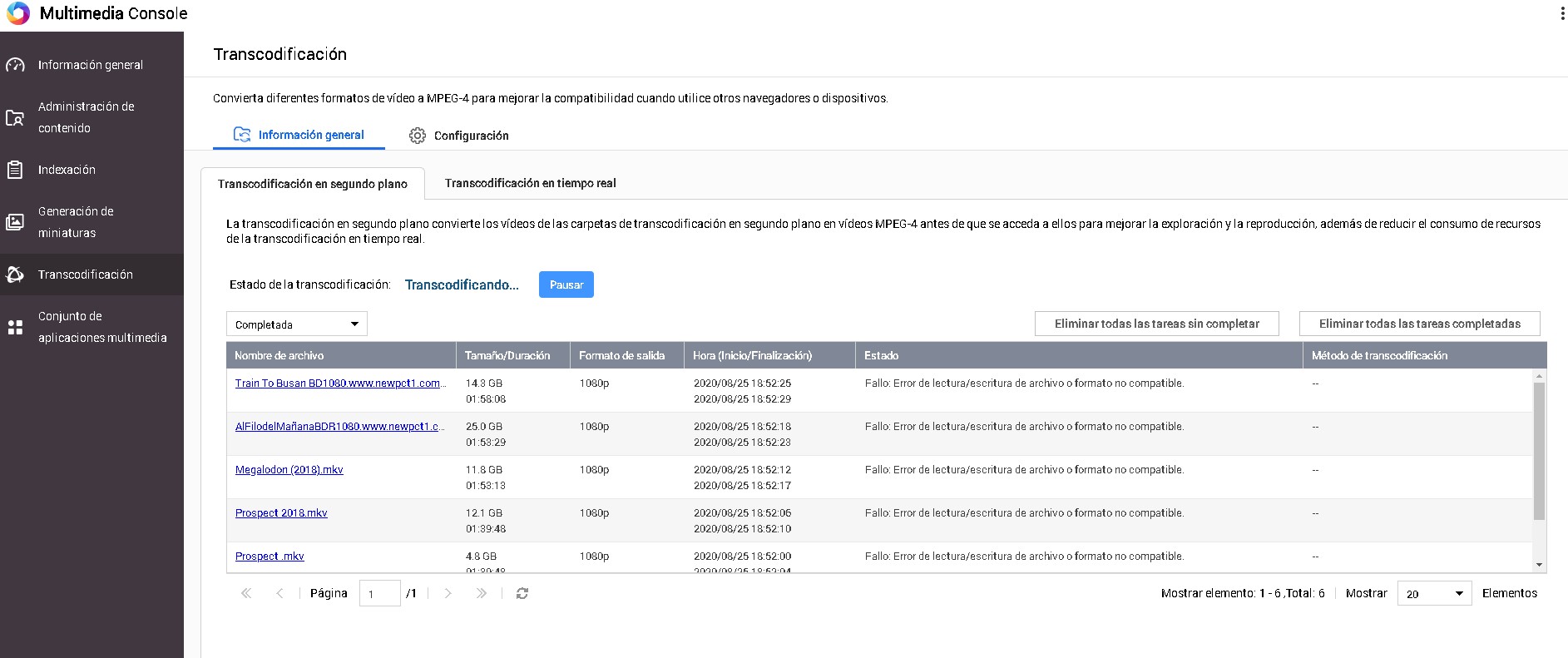El caso es que viendo los problemas de Codexpack, que no reconoce muchos formatos, y que la opcion de instalar una version antigua de Codexpack ya no funciona, la unica solución que se me ocurre es la de transcodificar las pelicuas para que el NAS sea capaz de reproducirlas. Pero me encuentro que solo es capaz de transcodificar algunos videos concretos.