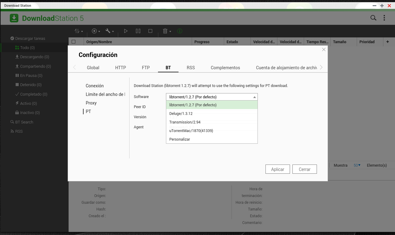 Y hablando de software para descargar torrent. Ultimamente Download Station no me va mal así que le estoy dando una oportunidad. Por cierto, entrando en la configuración de Download Station se puede escoger el motor que utiliza este software ( incluido Transmission )