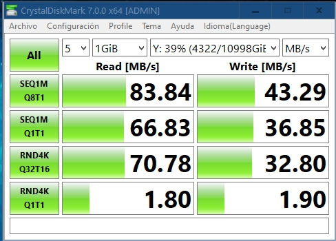 He usado el programa CrystalDiskMark