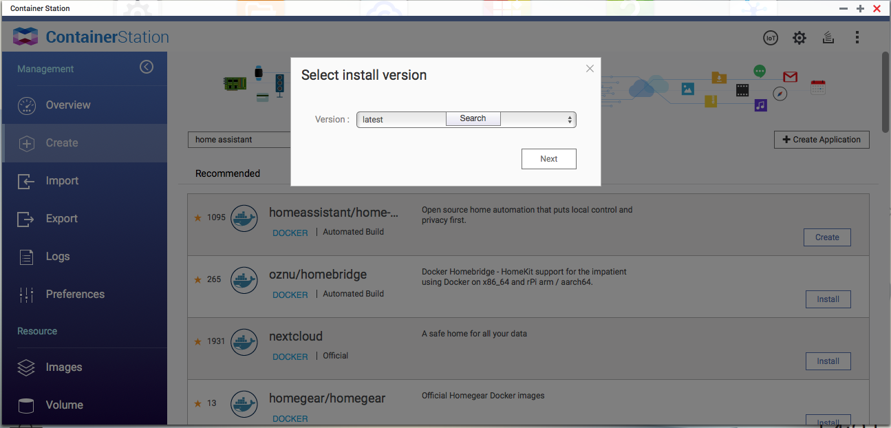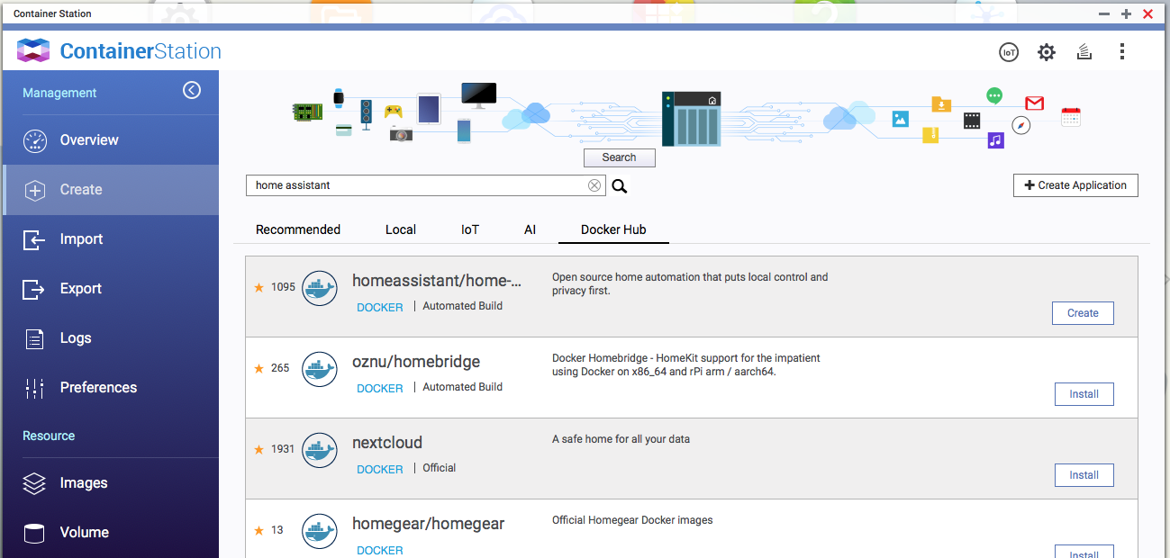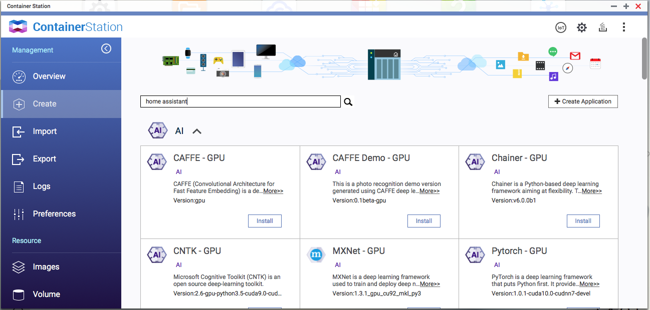 2. Lo siguiente es pulsar sobre container Station y le damos a créate, hay buscamos Home Assistant