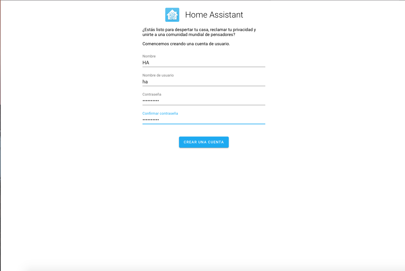 en mi caso 192.168.1.69:8123 y vamos rellenando los datos que nos pidan