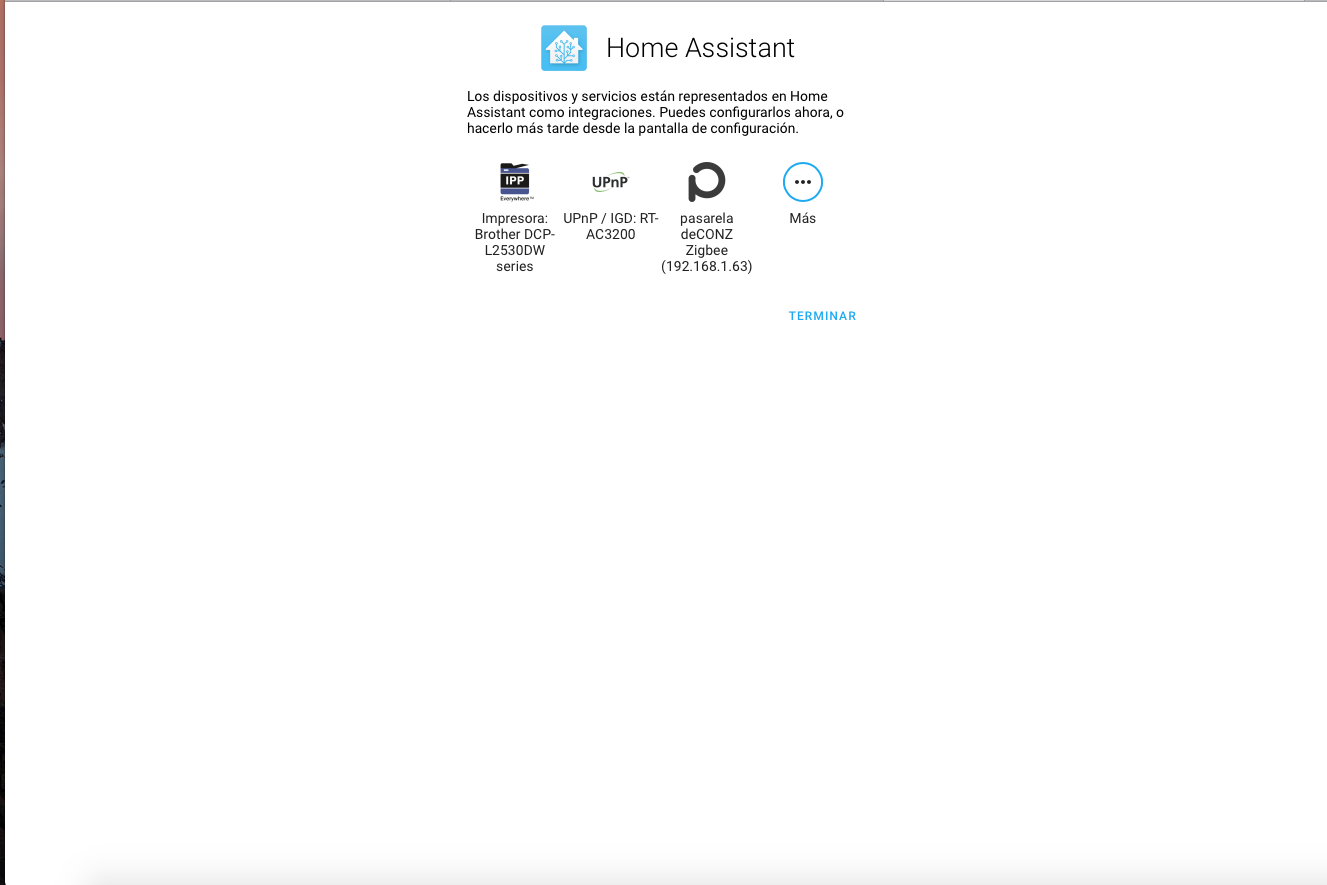 9. Home assistatn detectara los equipos compatibles hasta el momento y nos los mostrara para configurarlos, proceso que haremos mas adelante.