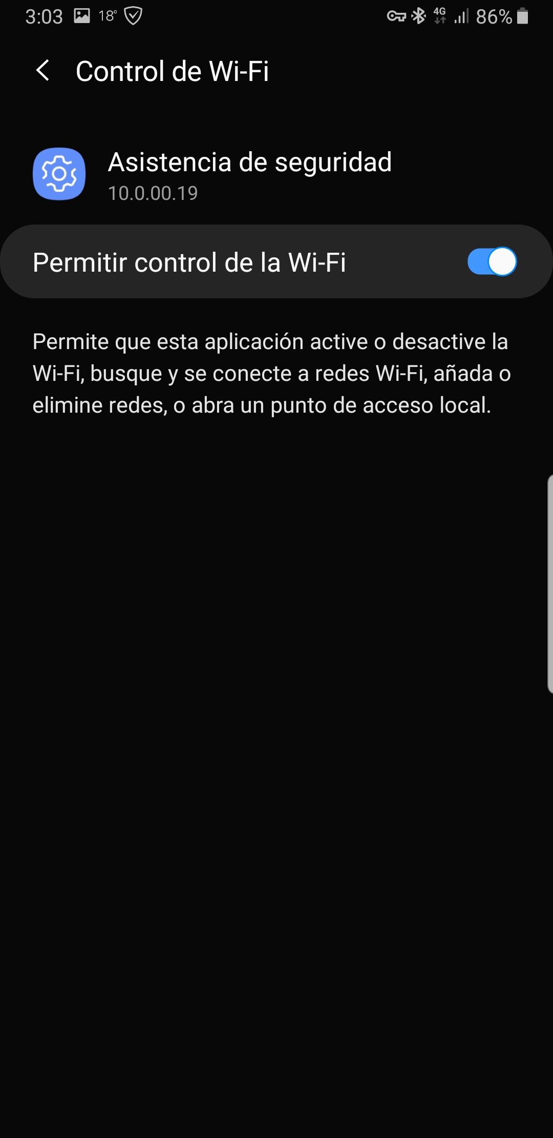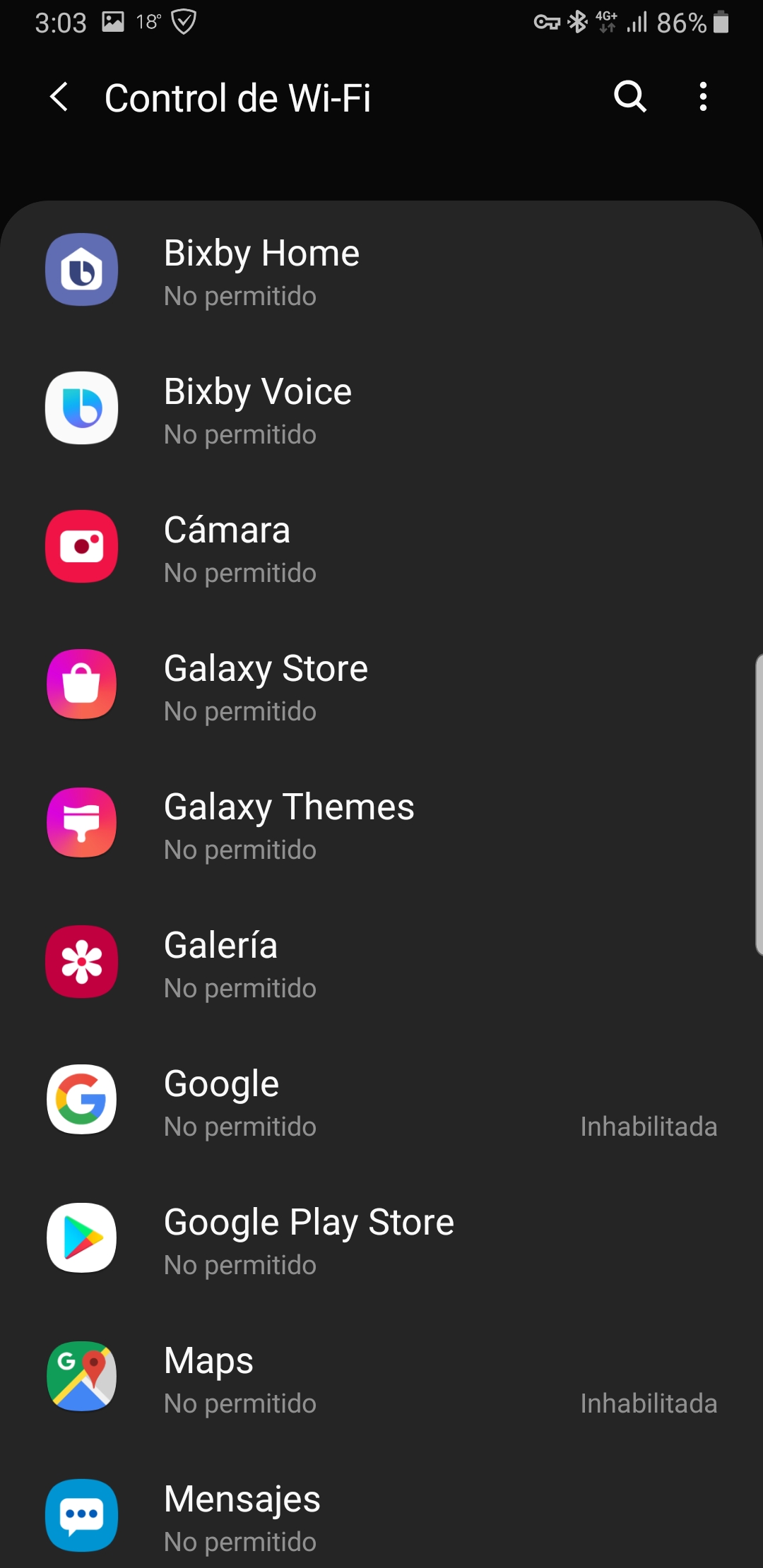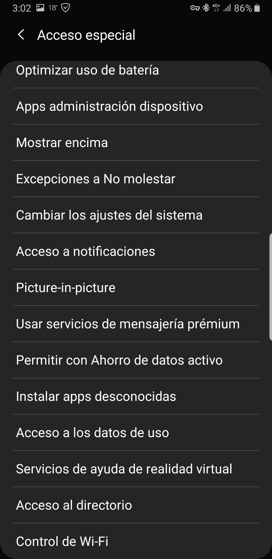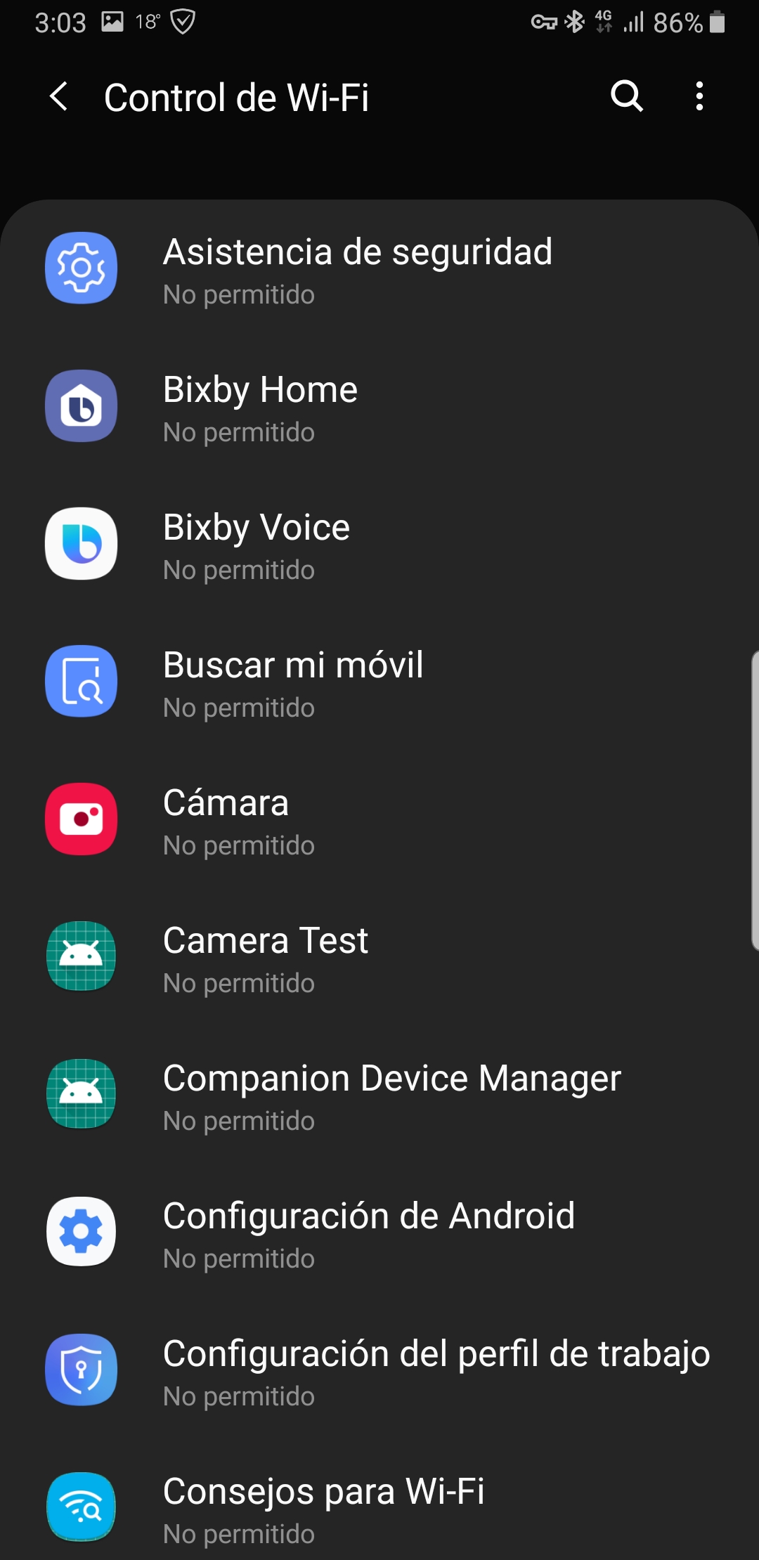 De las opciones que salen nos vamos a fijar en dos de ellas en la parte baja de la lista: Control de wifi y Acceso a los datos de uso