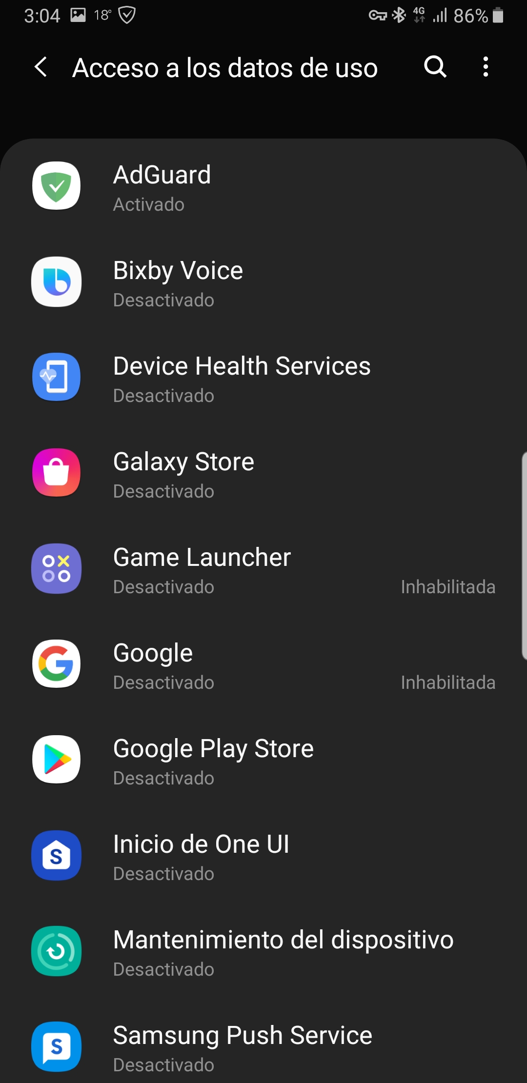 Lo que se ve está activo en todas y cada una de las aplicaciones que salen en el listado. Y diréis, si están activadas será por algo. Pues resulta que si se desactivan todas NO OCURRE absolútamente NADA. El móvil sigue funcionando normalmente, los whassaps funcionan y cualquier cosa que hagais con el movil se hará sin problemas.