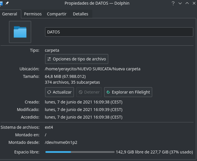 A continuación he comprobado el espacio que ocupa esa carpeta datos copiado del nas al ordenador