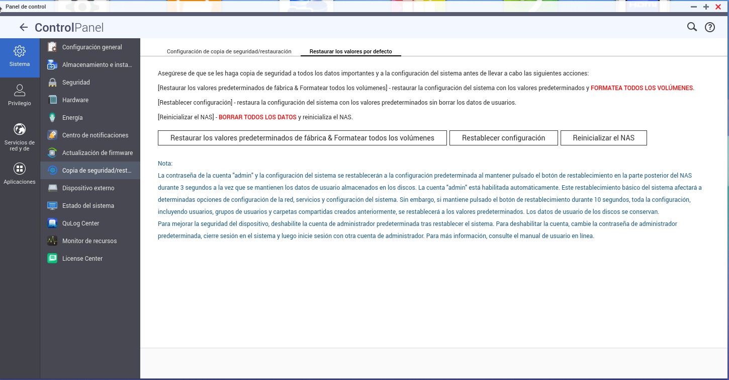 2 - Terrible lo de la NO INFORMACION por parte de Qnap a la hora del tiempo empleado en la reinicialización sin informar de un posible formateo a bajo nivel de los discos duros.