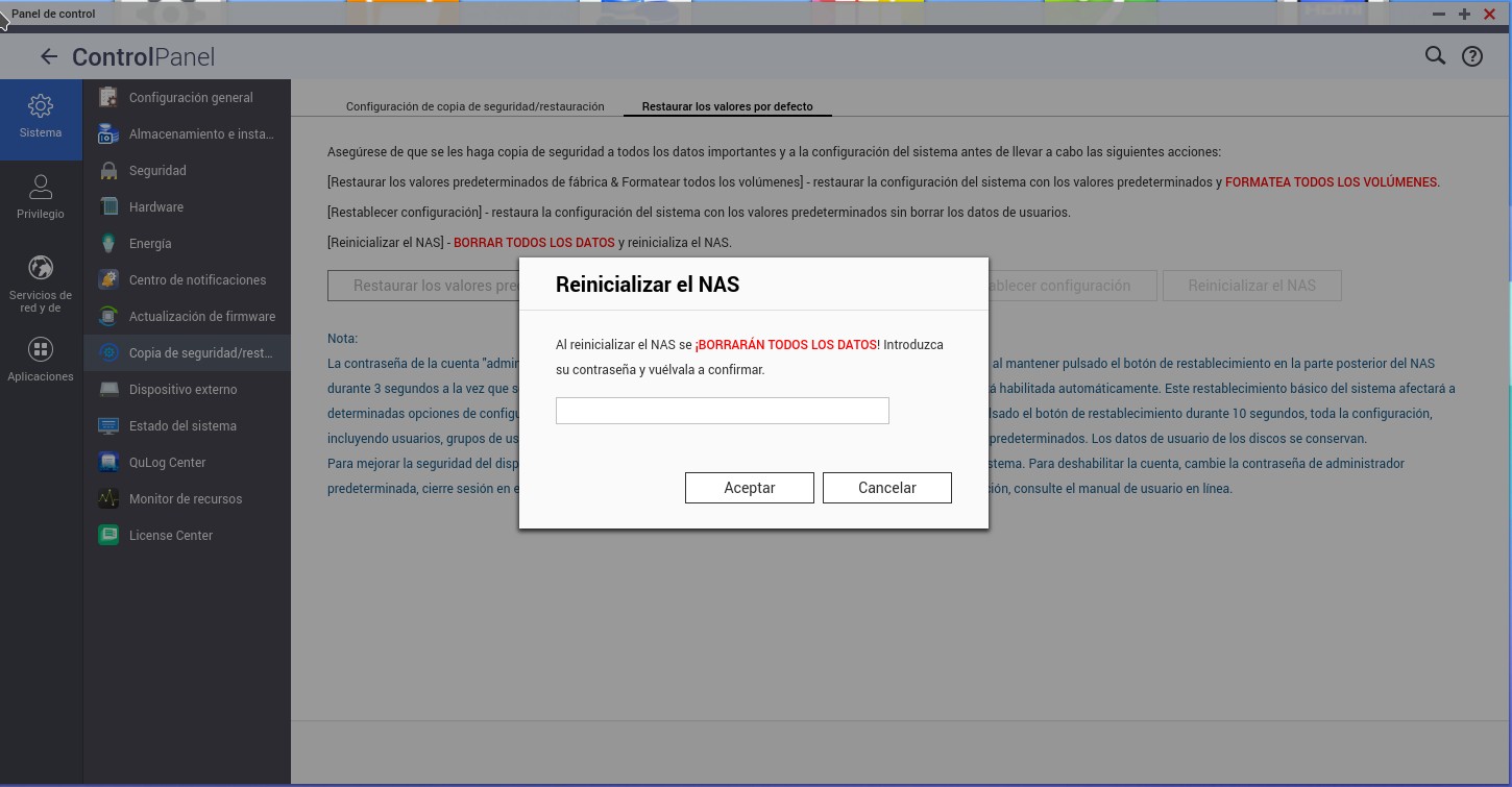 No voy a volver a hablar sobre la conveniencia de realizar una reinicialización del nas con QTS 5 y empezar de cero con el. Muchos simplemente actualizaréis y a funcionar. Para los pocos que os animéis a hacerlo os pongo un tutorial.