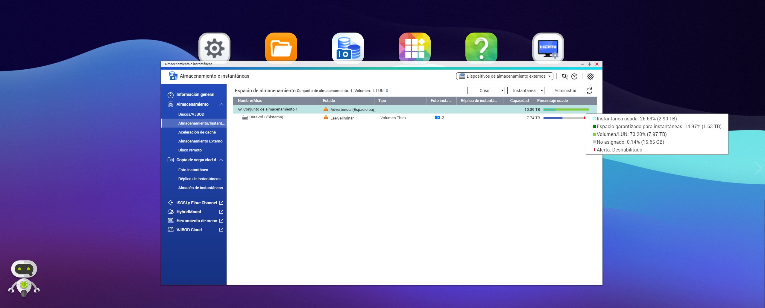 El tema es que el NAS me dice que no hay espacio suficiente. Me marca como espacio sin asignar una gran cantidad (casi 16Tb) cuando no es no es así.