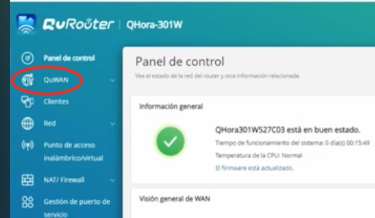 Una vez metido en el Router QHora hay que ir a la opción QuWAN.[