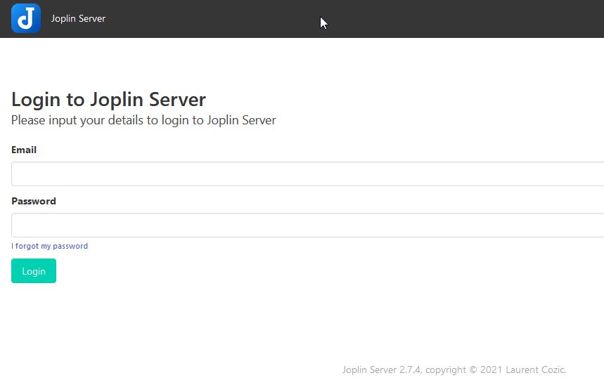 docker run -d -p 192.168.1.7:22300:22300 --network=Dockers --restart unless-stopped --name="joplin" --env-file .env joplin/server:latestY luego ya podremos acceder a la web de gestión de la joplin yendo a nuestro navegador local a la dirección "https://joplin.midominio.com"