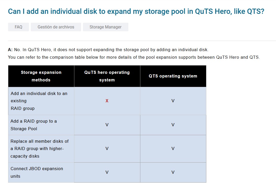 Si monto un volumen con RAID5 con QTS, puedo ir añadiendo discos al volumen aumentando así el espacio de almacenamiento, pero me gustaría instalar como sistema operativo QuTS hero, la pregunta es