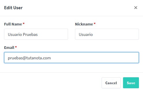Tras identificarnos, se nos abre la pantalla de modificación del usuario.