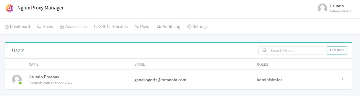 Una vez cambiada, veremos la pantalla principal con nuestro único usuario.