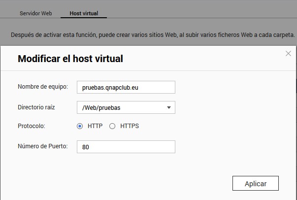 Para que funcione desde Nginx, hay que añadirla en QTS a la sección de host virtual.