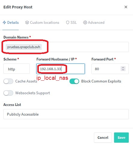 Es decir si exteriormente hacemos ping a "web.qnapclub.ovh" nos contesta con la misma ip que si lo hacemos a "pruebas.qnapclub.ovh"