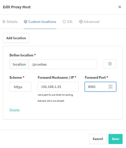 Es decir, desde nuestra red local accederemos al docker de nginx por la ip de la NAS y los puertos 6080, 6443 y 6081.