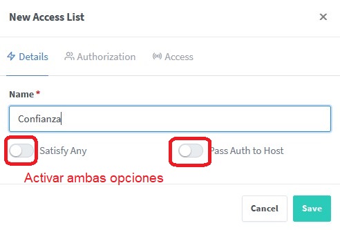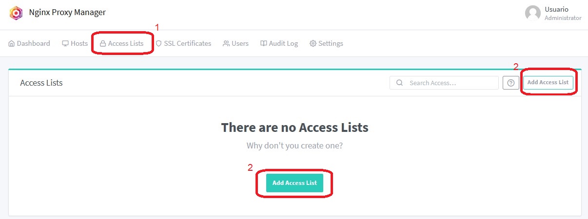 Para ello primero vamos a crear una primera lista para dar permisos a usuarios y/o ips
