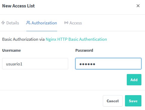 Ahora vamos a darle un plus de seguridad y podemos hacer que sólo sea accesible mediante un usuario y clave.