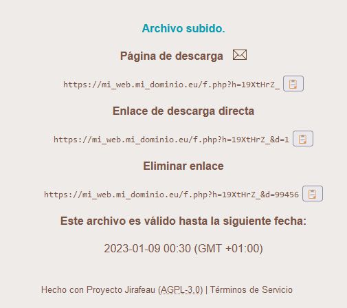 Y si pulsamos sobre los dibujos de los portapapeles, se copiarán los enlaces de descarga para que los podamos enviar por otros medios.