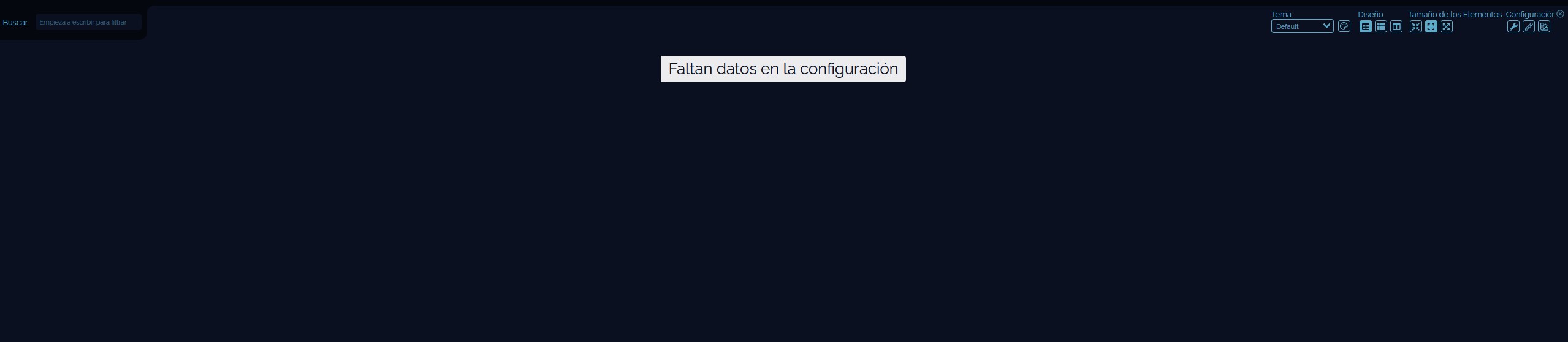 Una vez hecho esto vamos a la ipdelnas:4000 y se abrirá dashy, como hemos creado un archivo en blanco se debería ver algo así: