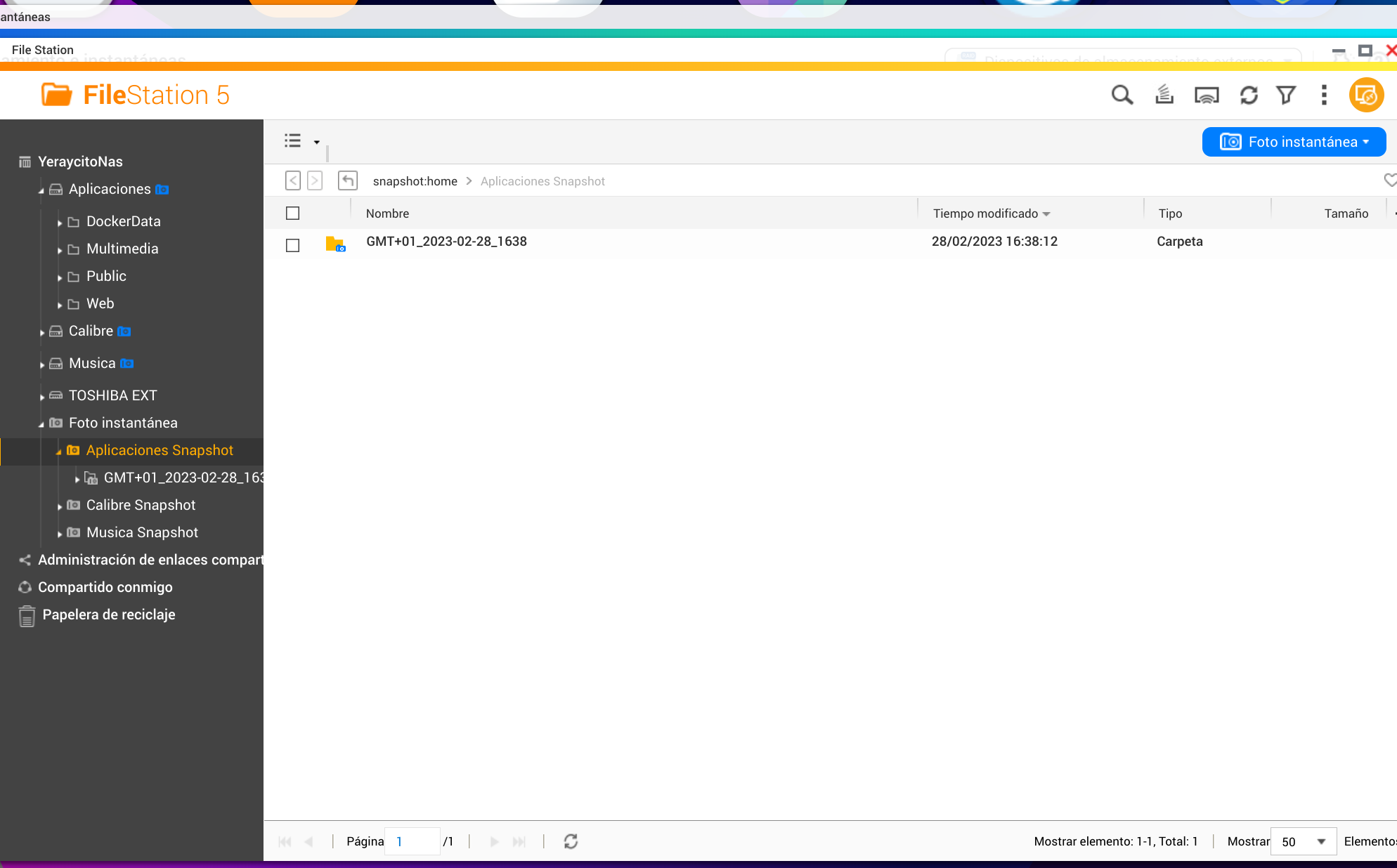 Si en el nas accedemos a File Station vemos que tenemos un apartado especial donde se puede ver la instantánea que tenemos creada en el nas