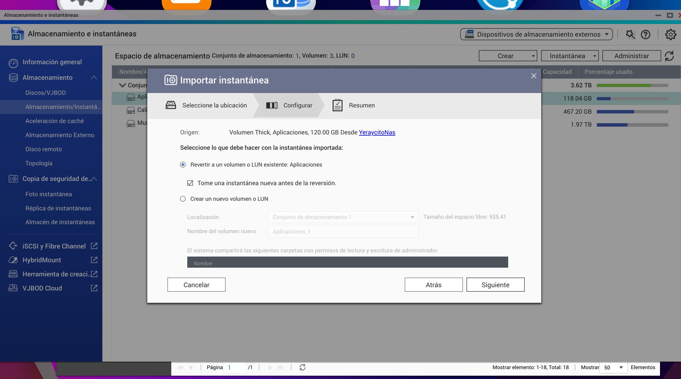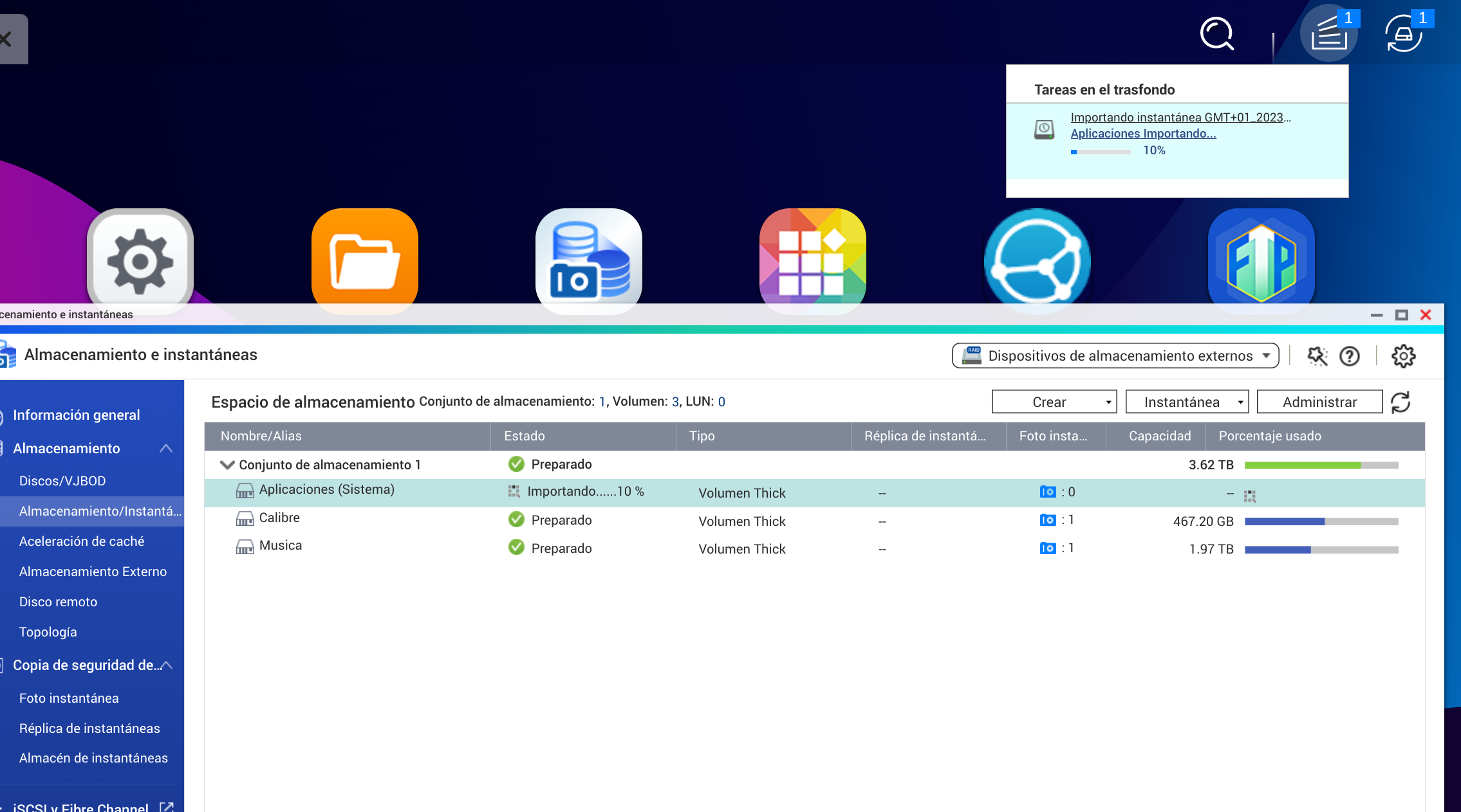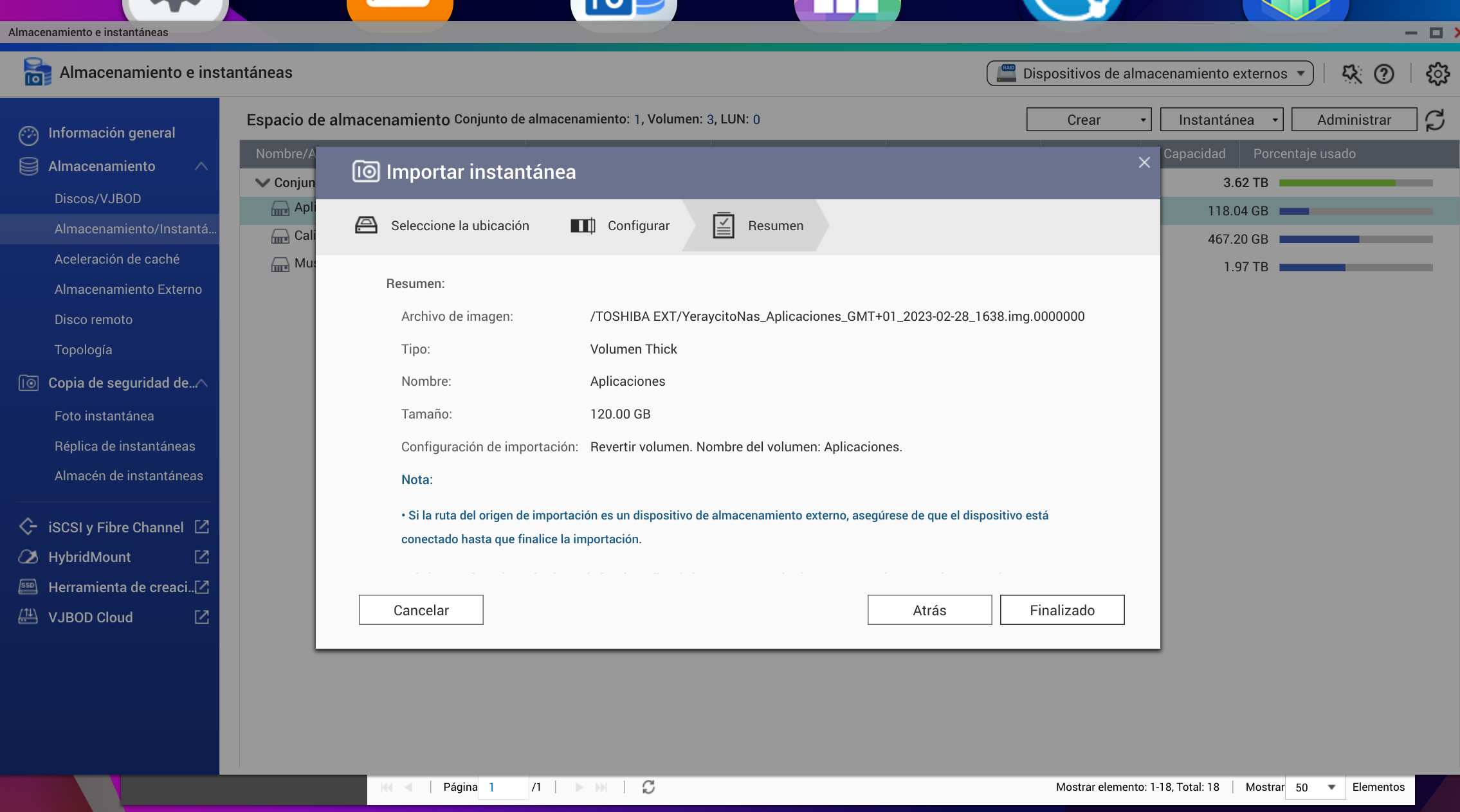 Por último una cosa, una vez terminada la importación de la instantánea el nas NO se ha reiniciado ni tampoco me ha pedido que lo haga.