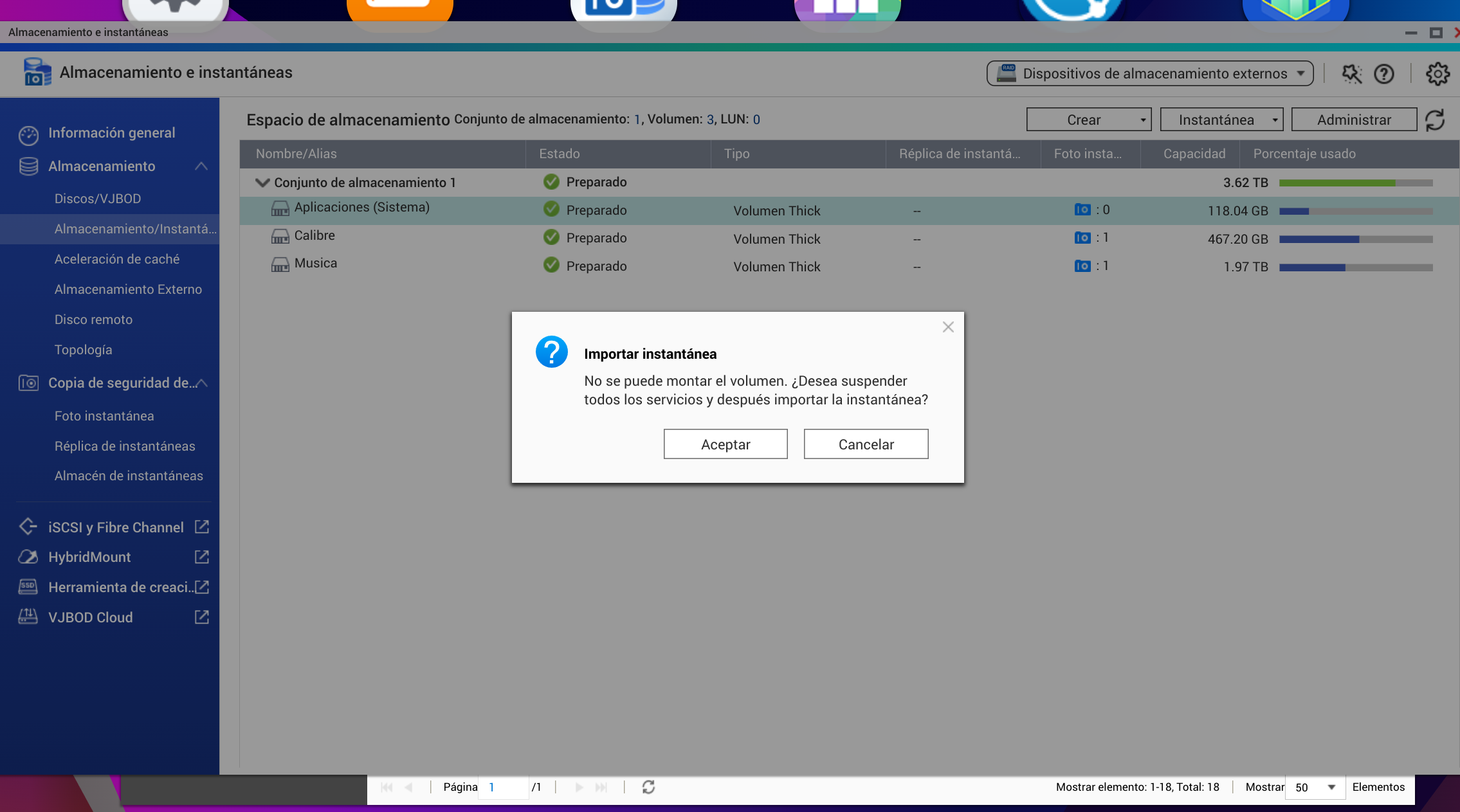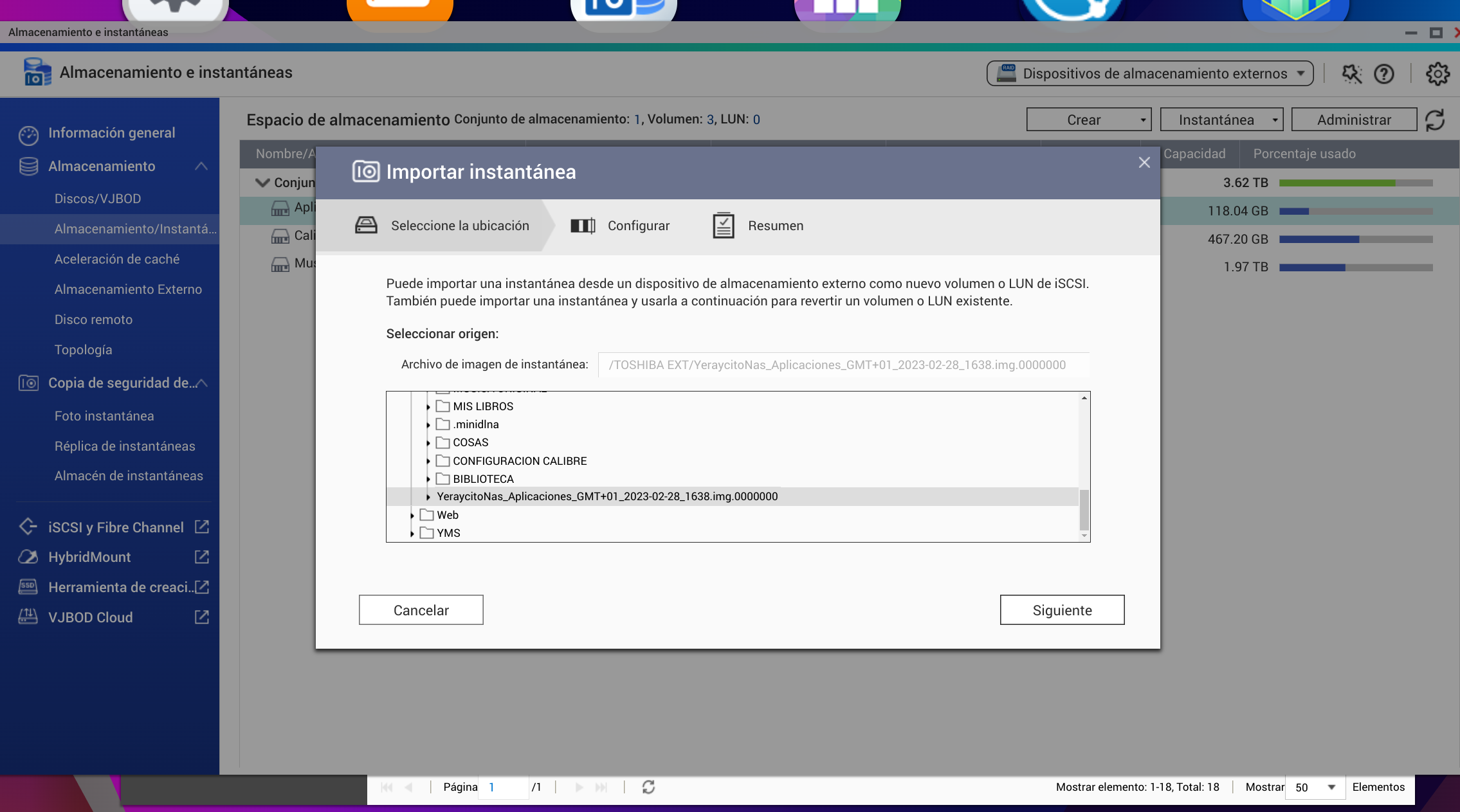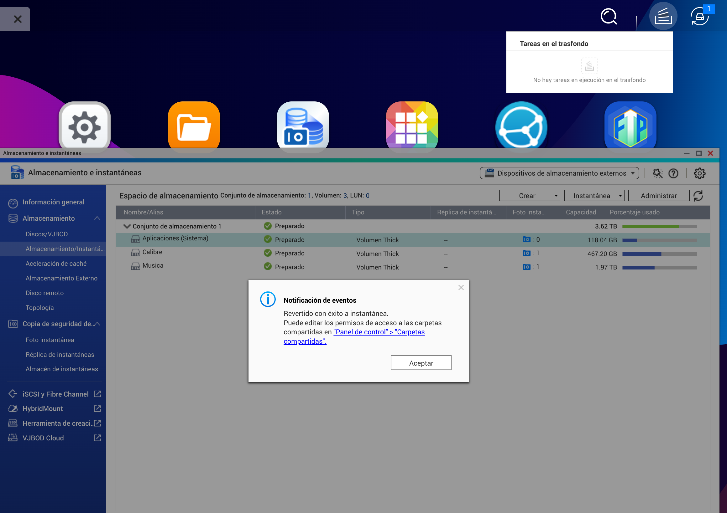 Por último una cosa, una vez terminada la importación de la instantánea el nas NO se ha reiniciado ni tampoco me ha pedido que lo haga.