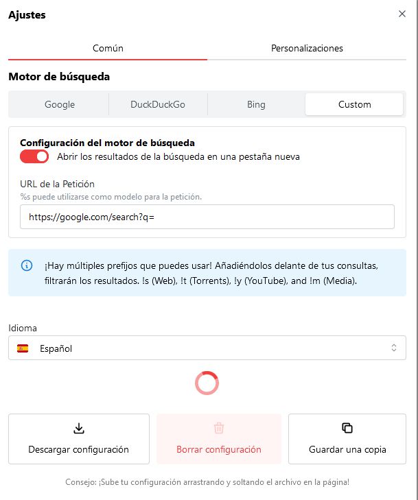 En común tenemos la opción de elegir entre tres buscadores o un cuarto mas personalizado
