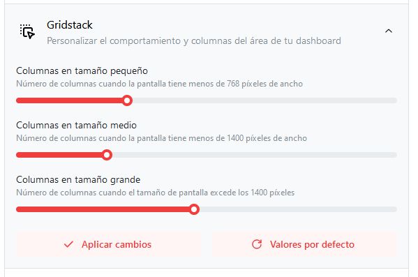 En las opciones de grid podemos elegir tamaños de columnas