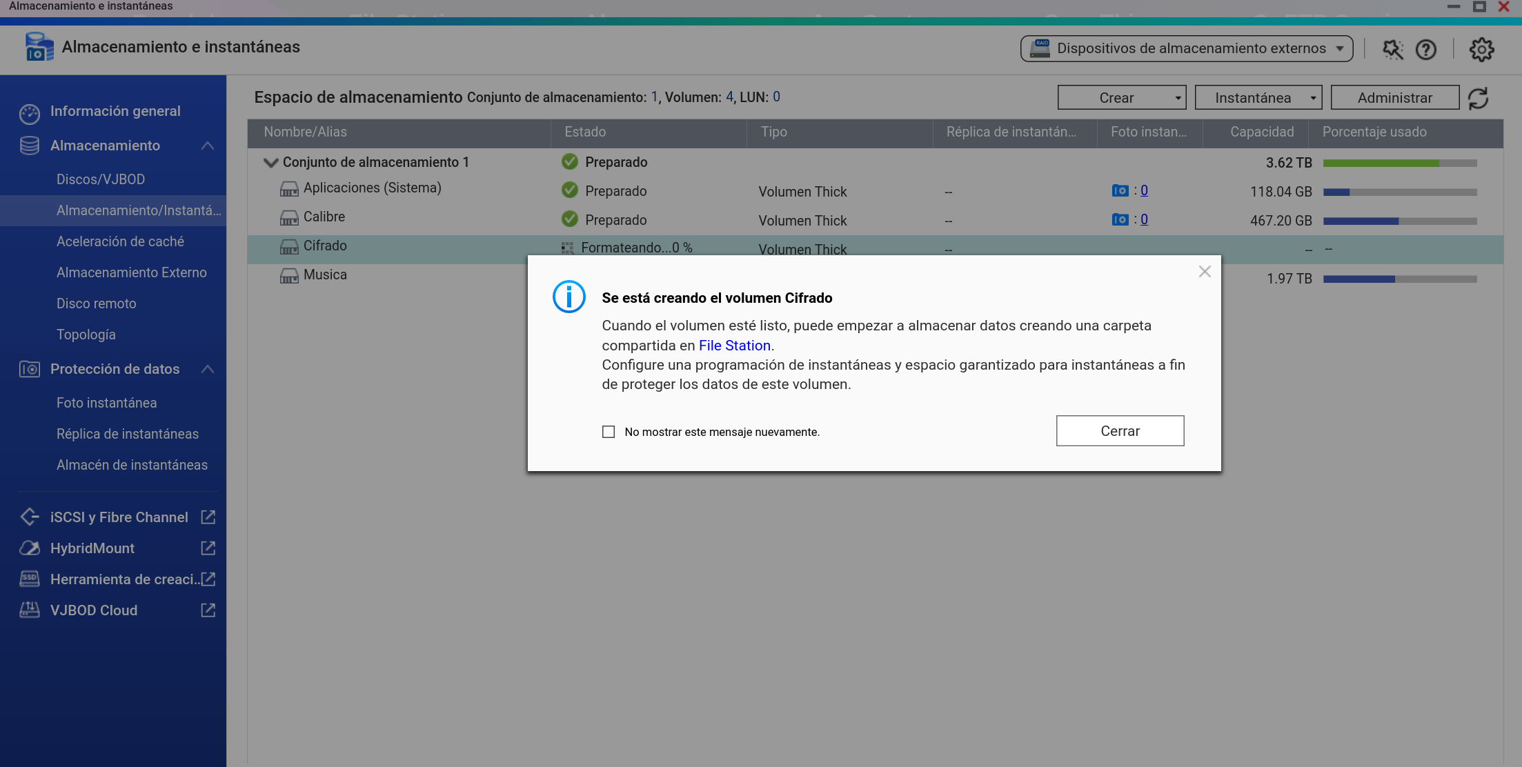 Desde el propio File Station lo podemos bloquear y desmontar.