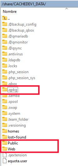 He recuadrado dos de las carpeta compartidas inamovibles y la oculta ".qpkg" que es la que nos interesa y que contiene lo siguiente: