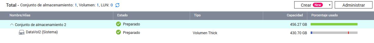 Si todo ha ido bien, veremos sólo el único conjunto de almacenamiento que ya es de "sistema"