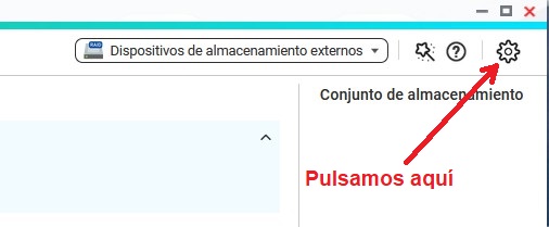 Para ello vamos a "Almacenamiento e instantáneas" y pulsamos en el icono de configuración (rueda dentada de arriba a la derecha)