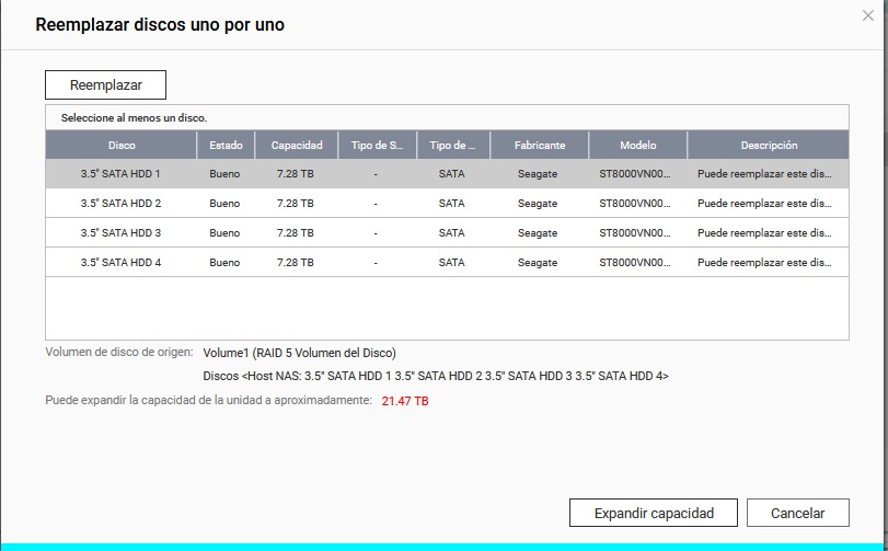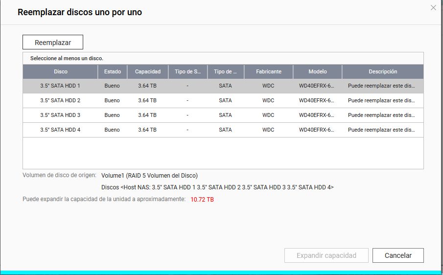 El proceso es sencillo pero será laaaaargo, pero tenemos la ventaja de que nuestra nas seguirá trabajando mientras hace los cambios.
