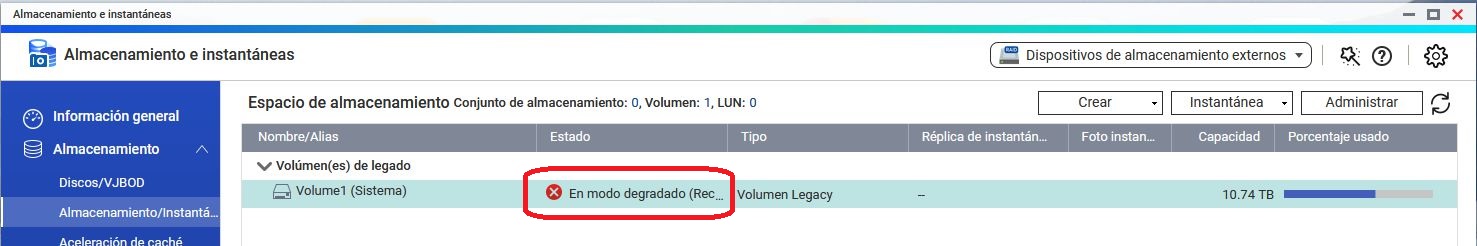 Durante el proceso de reconstrucción, el led de la nas está en rojo y notaremos que no está tan ágil como es habitual, pero sus servicios no se han detenido.