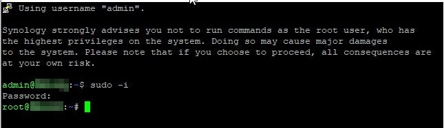 desde DSM7 se ha aumentado la seguridad y hay ciertos comando que NO podemos ejecutarlos aun siendo administradores.Para poder hacerlo hemos de hacer ciertas operaciones en la consola como root.