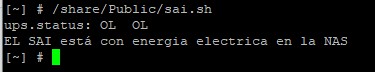 ssh admin@ip_nas_synology -p22 'ls'4-creo un script para que cuando el SAI está suministrando energía usando baterías lanza un comando de apagado de la Synology.
