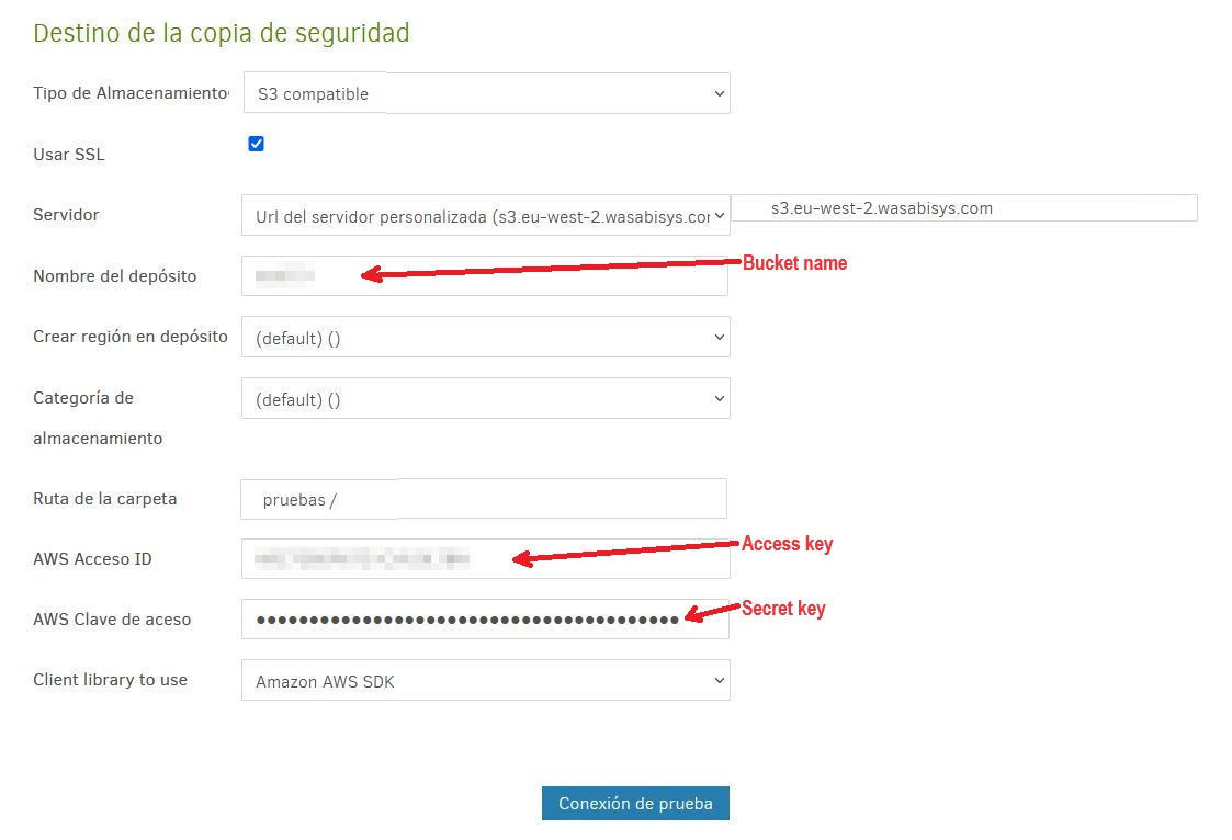 El principal escollo es definir el acceso a Wasabi desde Duplicati si éste no está en el desplegable de destinos.