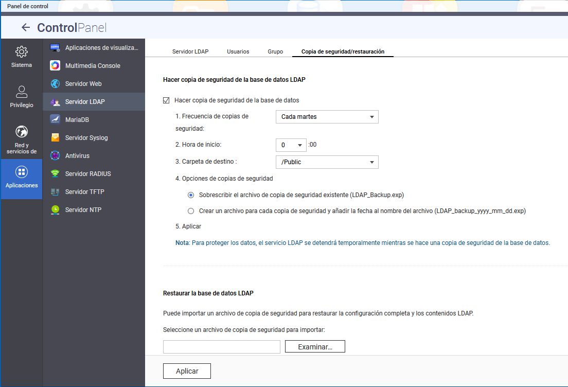 Voy a tratar de describir como desplegar un servidor LDAP en nuestra NAS,