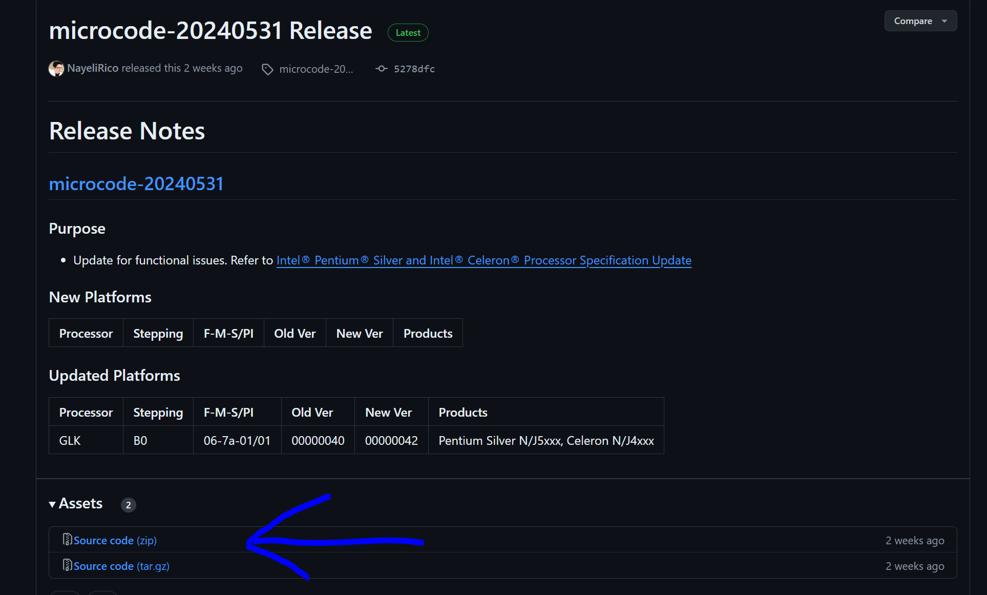 Lo primero que tenemos que hacer es descargarnos a nuestro ordenador los microcodes desde la web de Intel en Github: