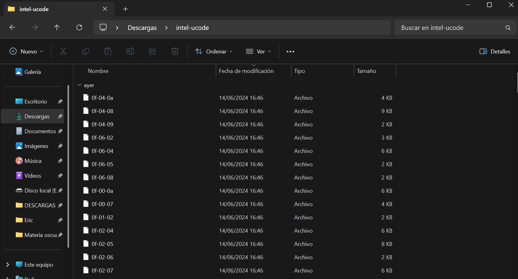 Dentro de la carpeta intel-ucode nos encontramos los microcodes de TODOS los procesadores Intel habidos y por haber y tiene esta pinta: