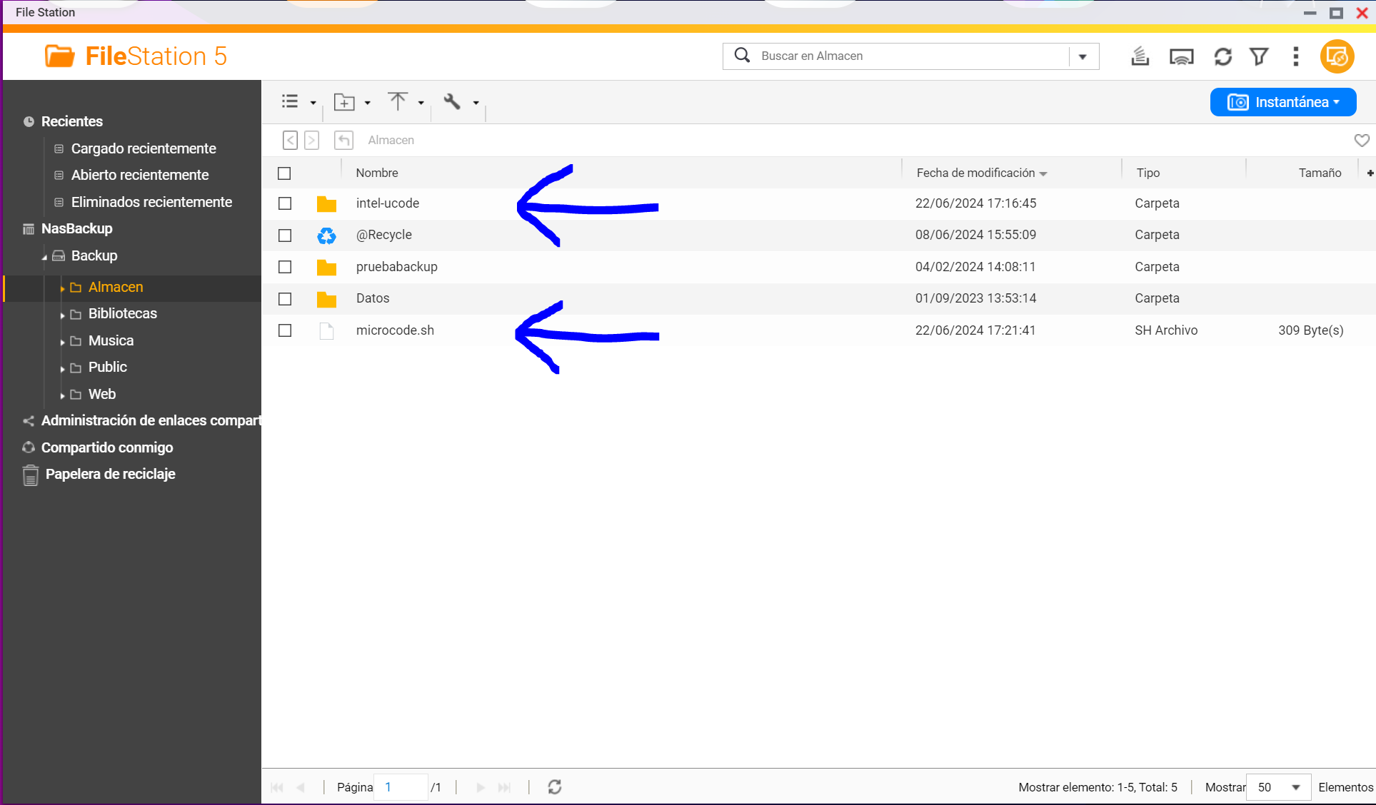 Lo primero que vamos a hacer es pasar la carpeta intel-ucode que tenemos descargada en el ordenador a nuestro nas, la podemos meter dentro de la carpeta compartida del nas que nos apetezca: