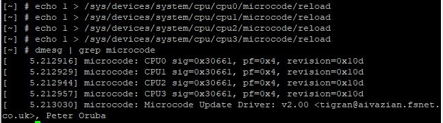 echo 1 > /sys/devices/system/cpu/microcode/reload