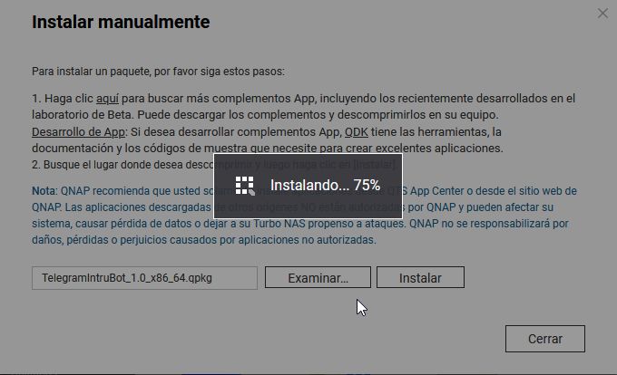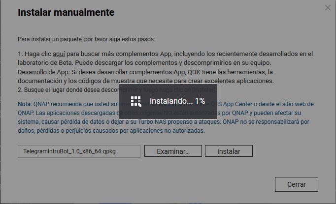 Y si habéis llegado hasta aquí, he creado un paquete instalador QPKG para máquinas x86 que nos agrega un icono en el App Center para activar/desactivar el docker IntruBot de Telegram.