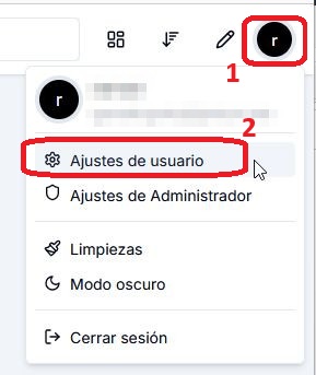 Si queremos cambiarlo de idioma haremos clic en la parte superior derecha donde esta el circulo del usuario